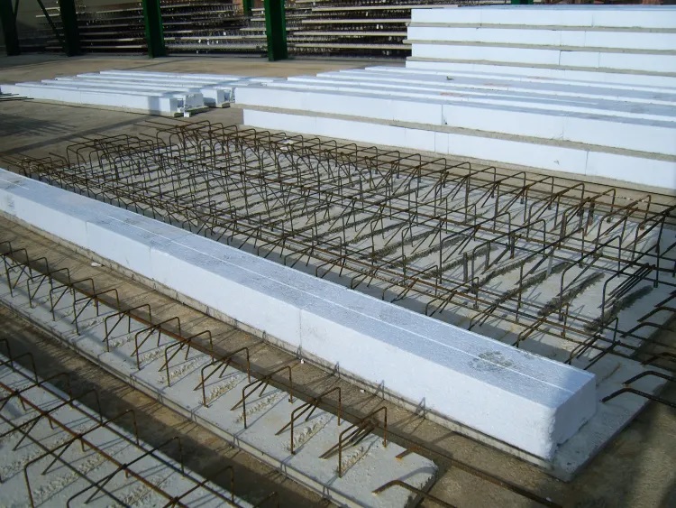 Piezas de hormigón armado, aligeradas con poliestirenos expandido.